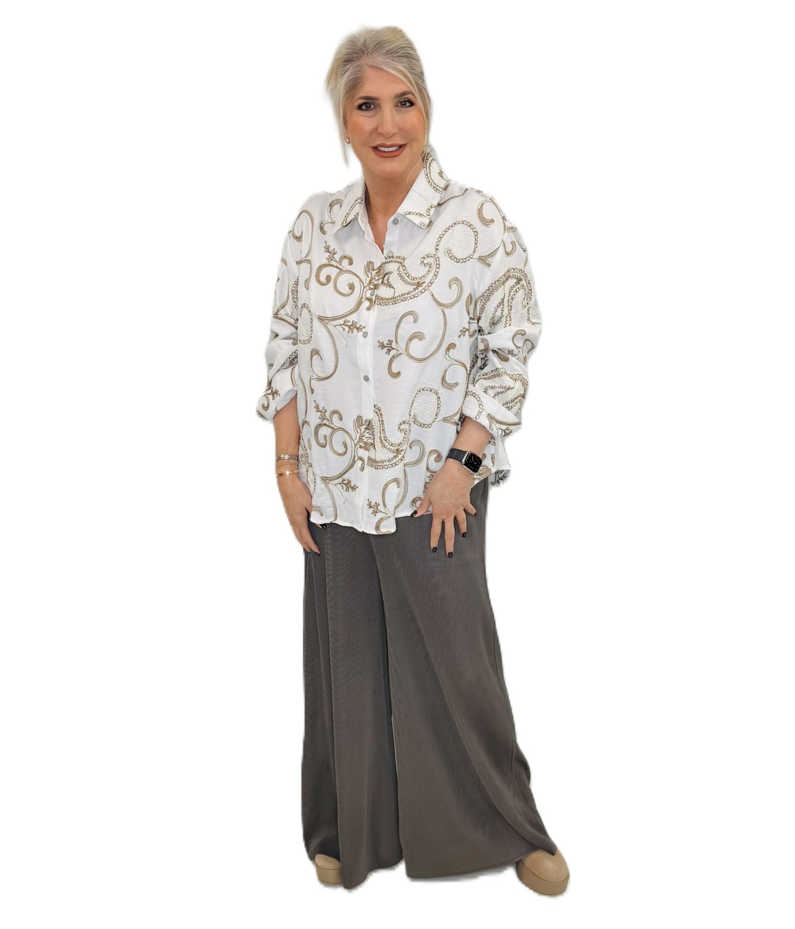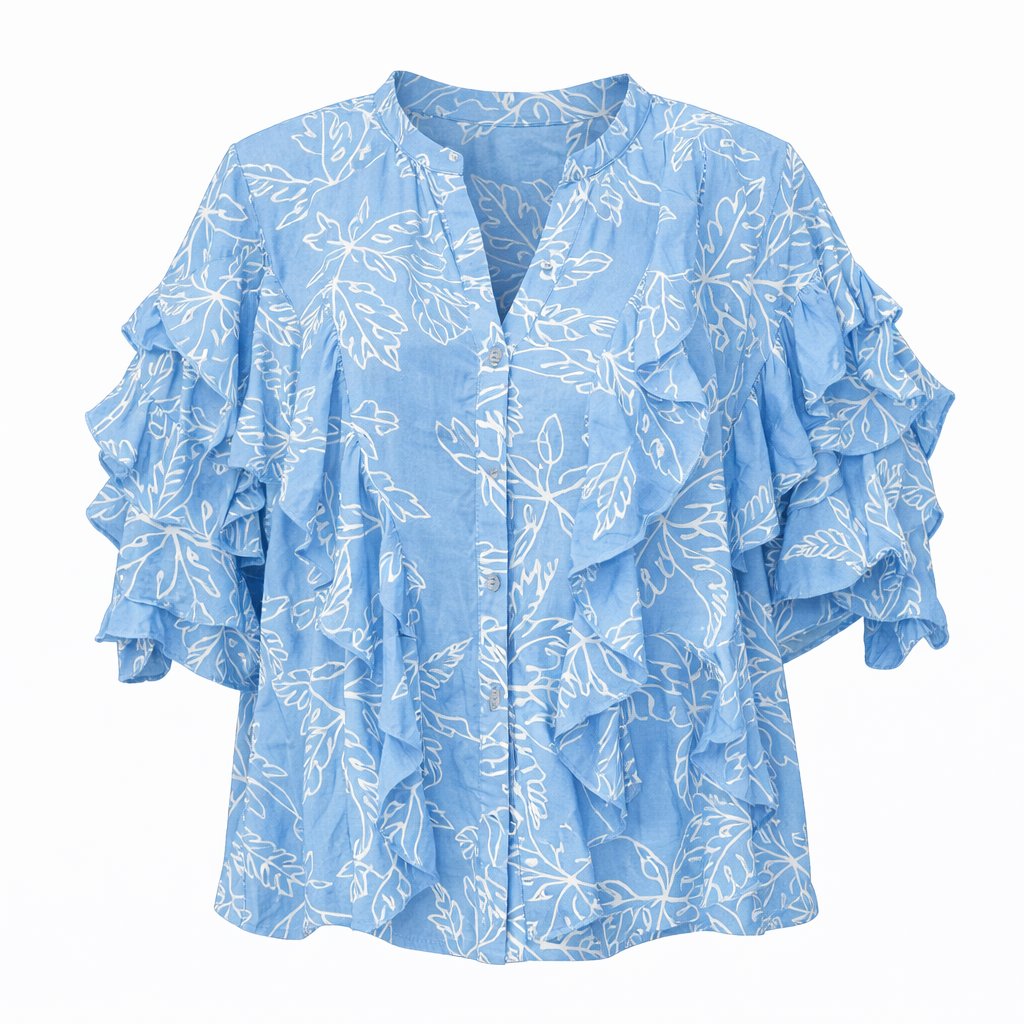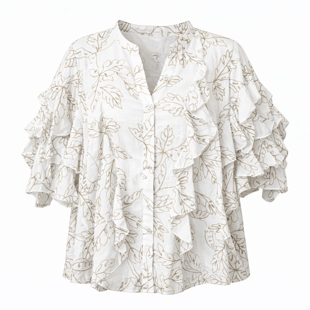 BUTTON THROUGH WOVEN RUFFLE DETAIL SHIRT
