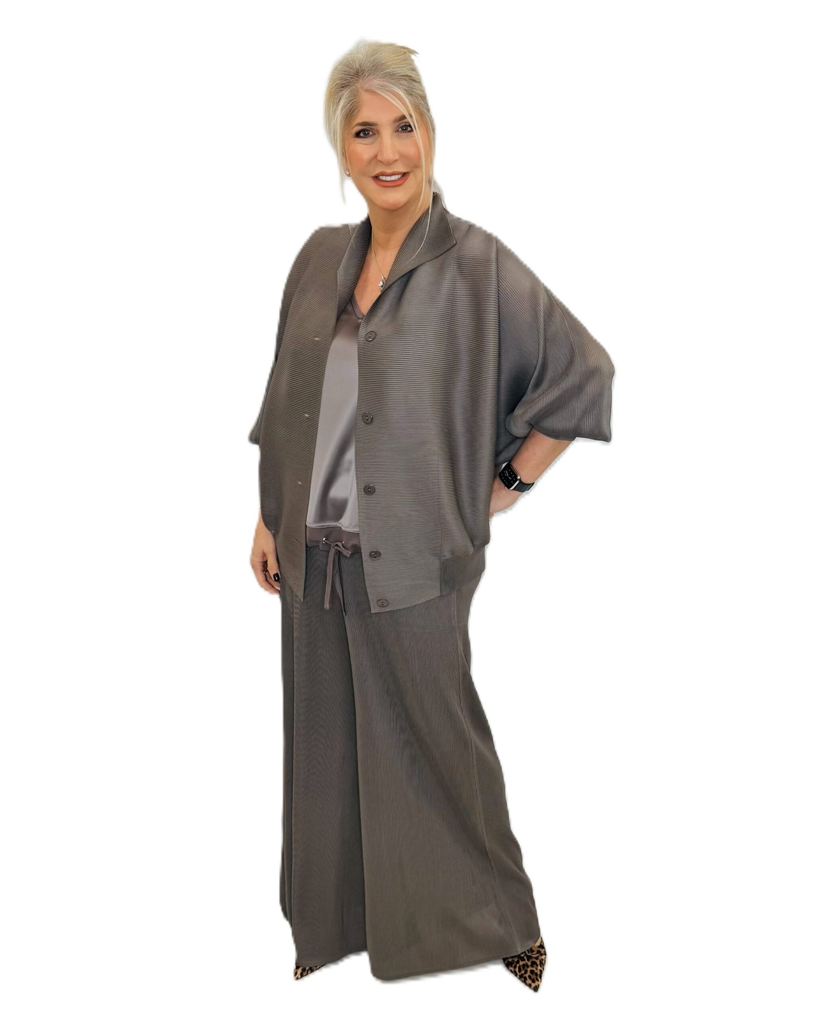 MUSHROOM PLEATED TROUSERS WITH ELASTICATED WAIST