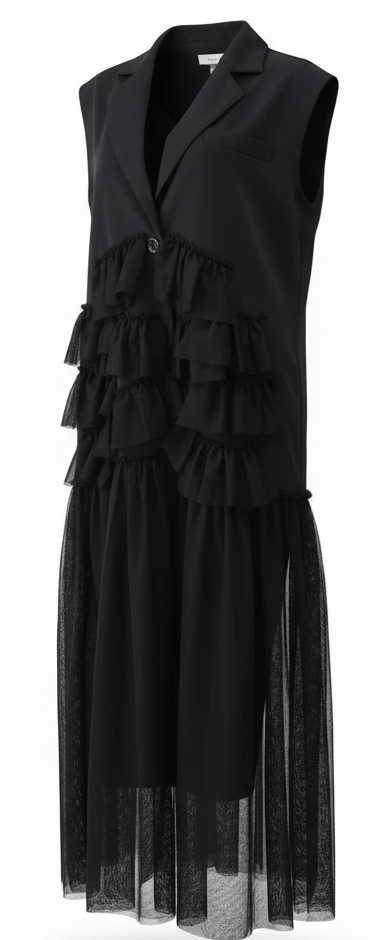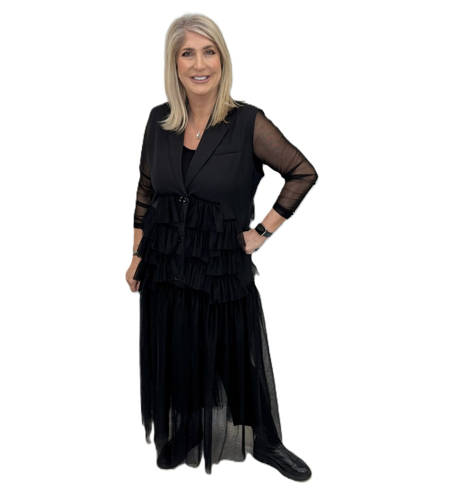 LONG WAISTCOAT / DRESS COAT WITH MESH RUFFLE DETAIL