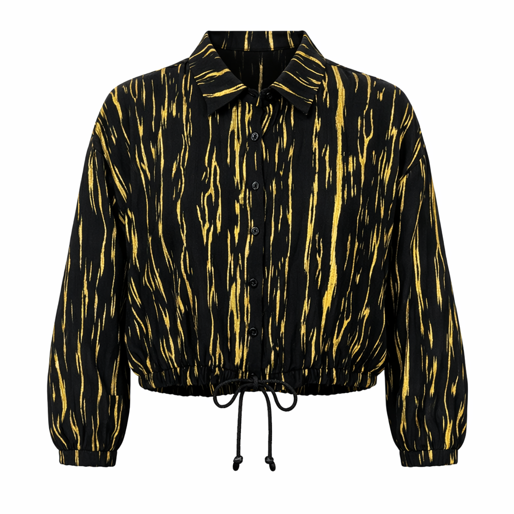 PUFF SLEEVE BOMBER STYLE BUTTON THROUGH JACKET WITH DRAW CORD WAIST