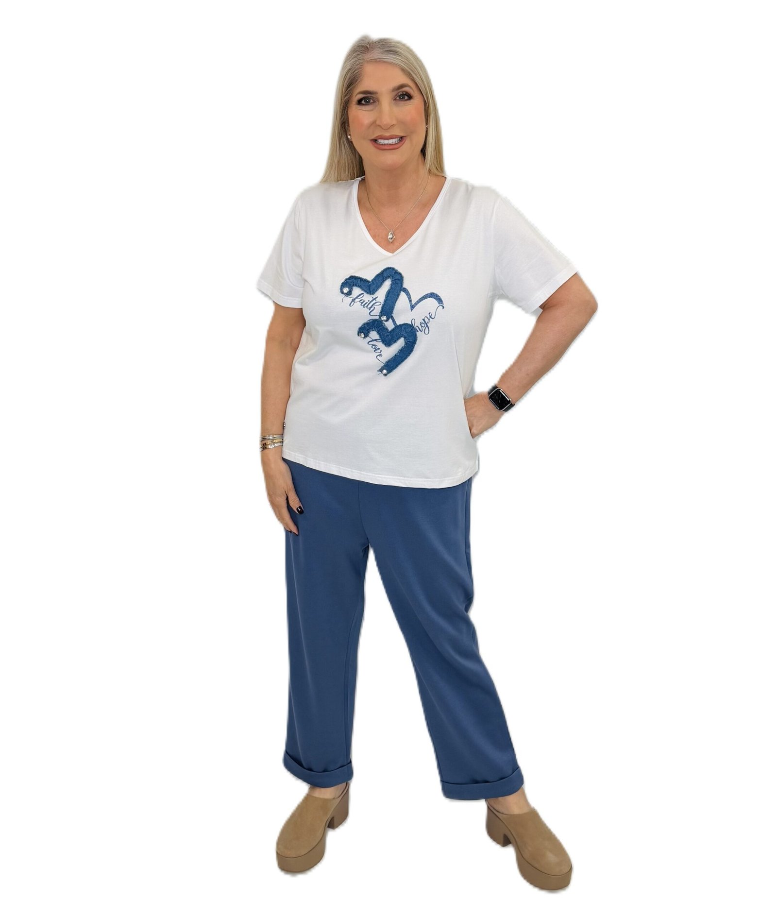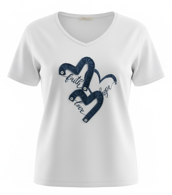 V NECK JERSEY T SHIRT WITH DENIM MOTIF