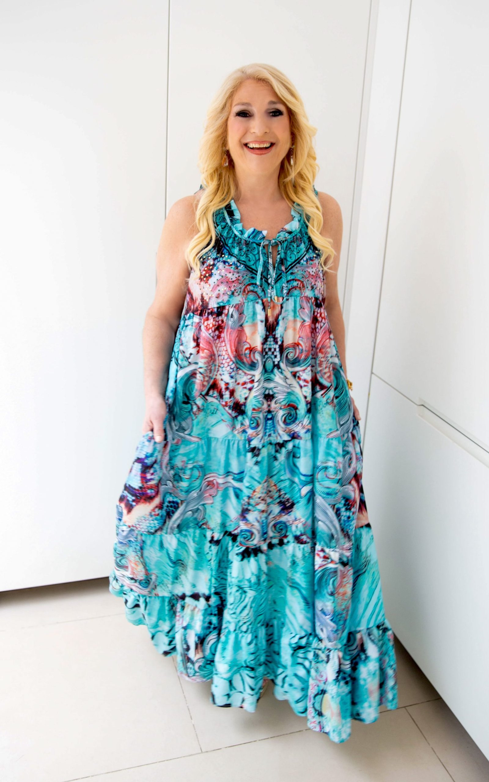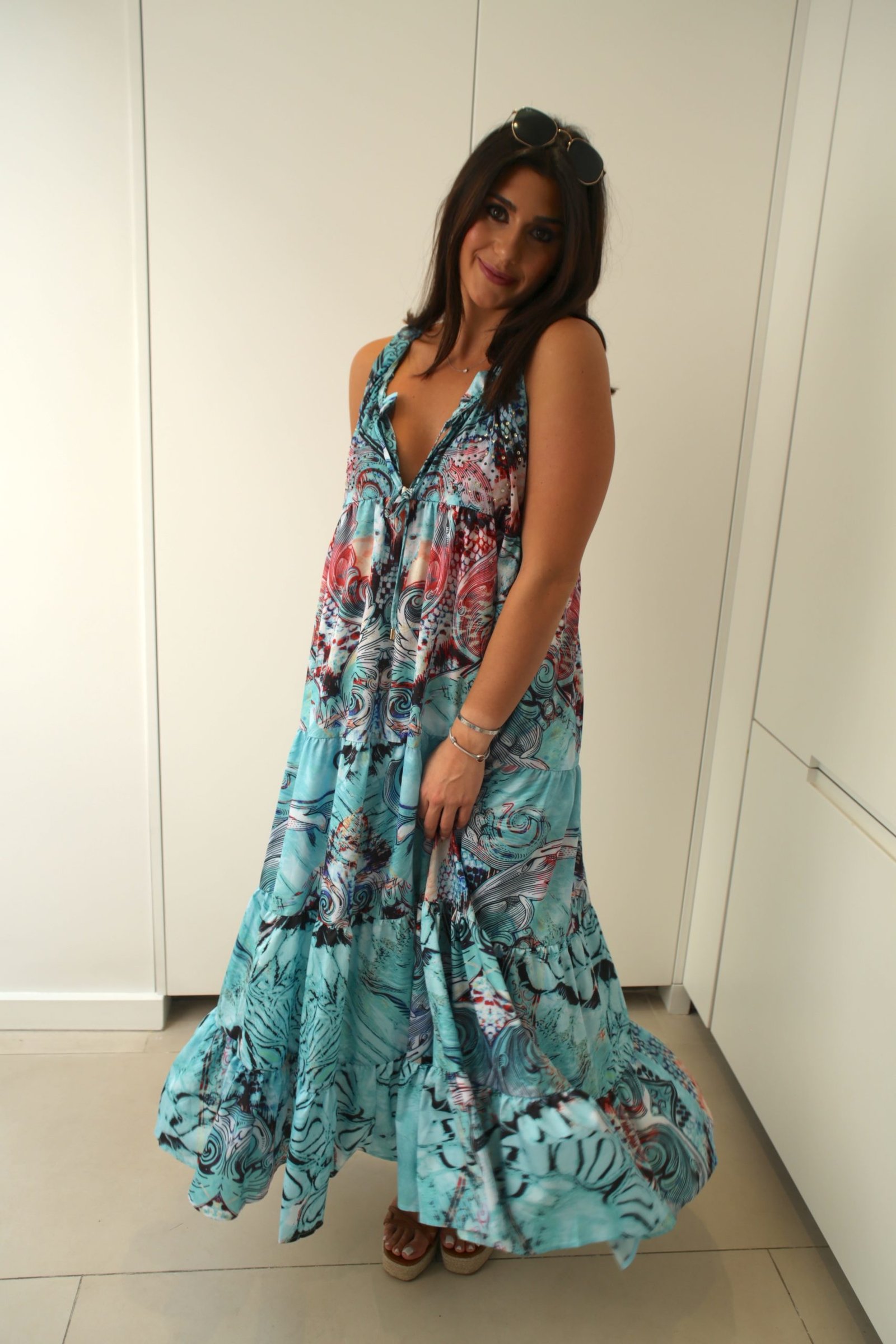 Introducing the Charlotte. This stunning printed silk like maxi dress features a beautiful tie at the neck with frill detail. A tiered body with a flattering frill hem.