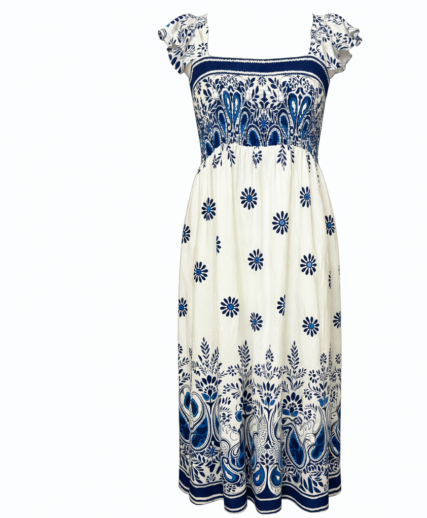 FRILL DETAIL STRAP DRESS WITH SHEERING ELASTIC UPPER SECTION