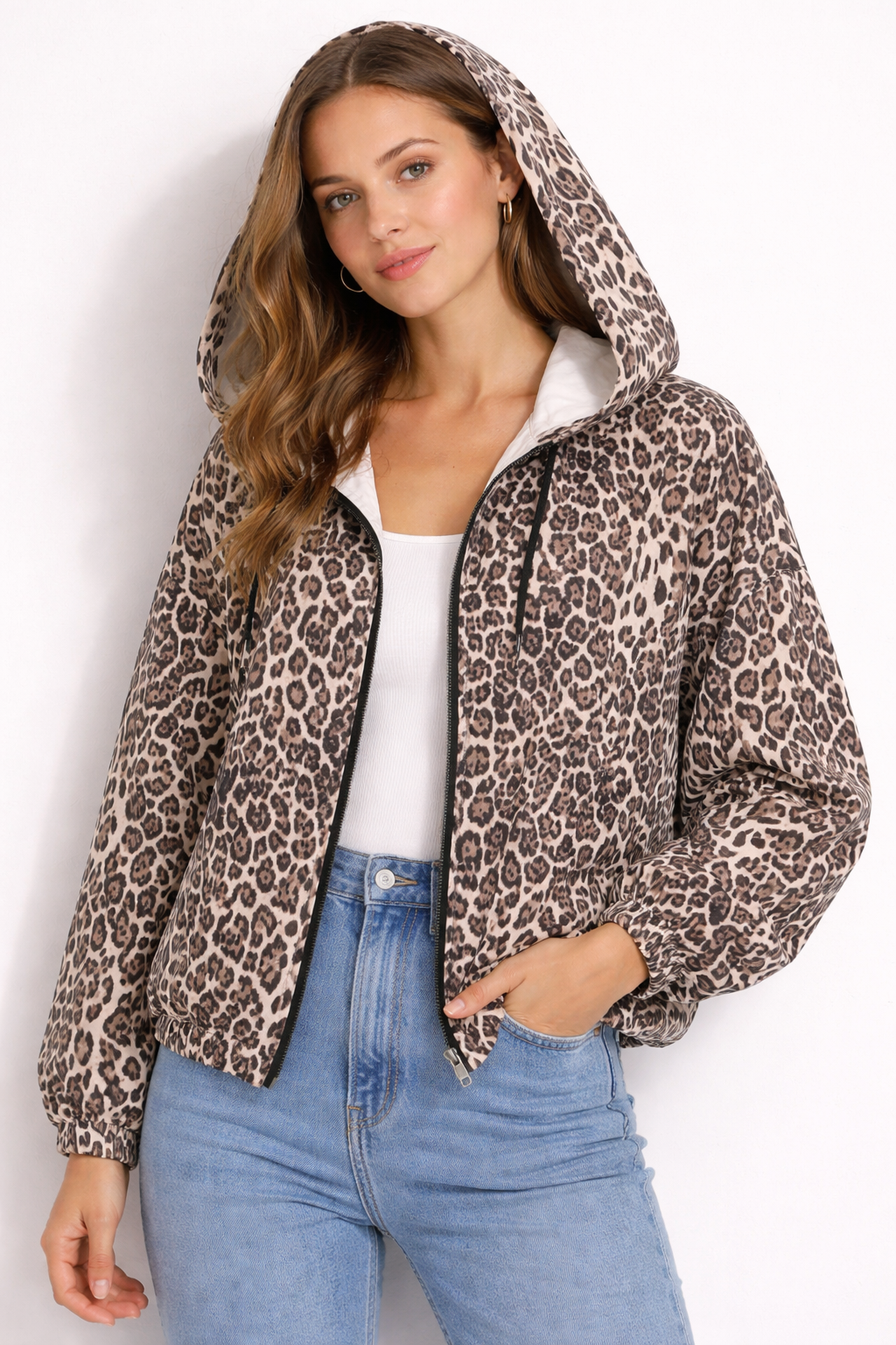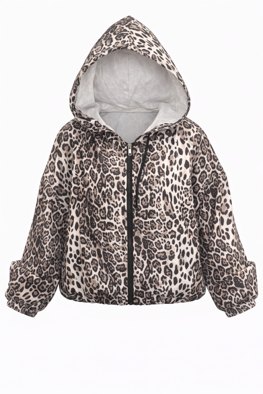OVERSIZED HOODED ZIP THROUGH JACKET WITH ELASTICATED CUFFS AND HEMLINE