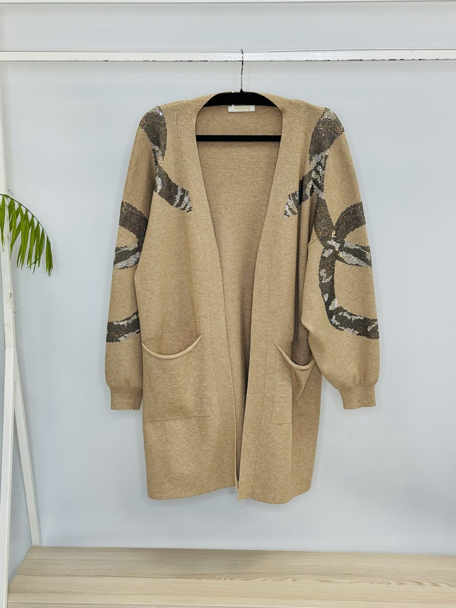 ‘L’ Inspired studded sleeve detail cardigan – one size 10 – 20