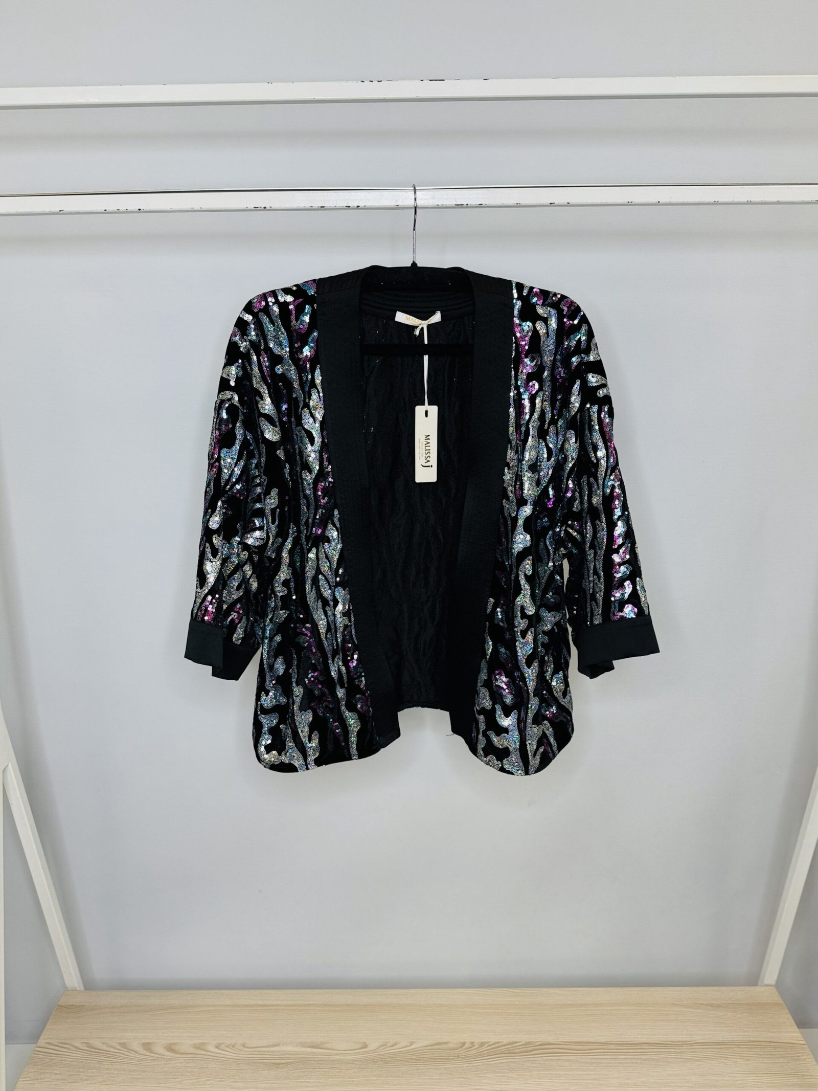 ‘L’ Sequin detail cropped kimono – one size – 10 – 18