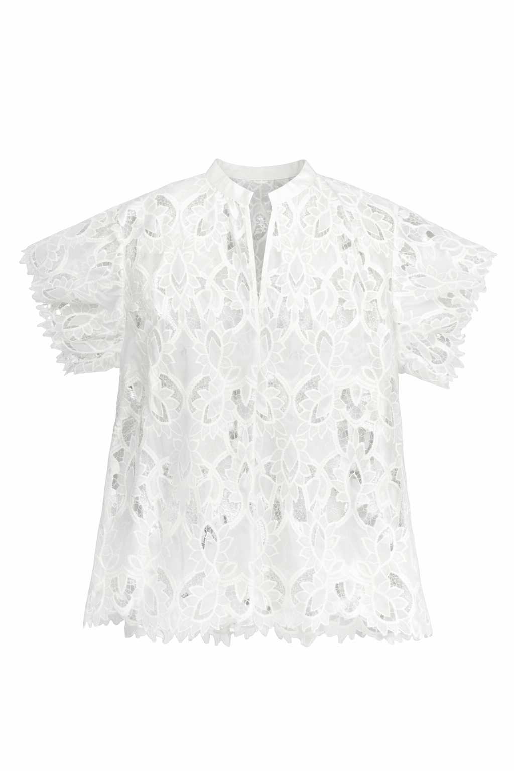 OPEN BRODERIE ANGLAIS TOP, NOTCH SLIT NECK,SIDE SLITS