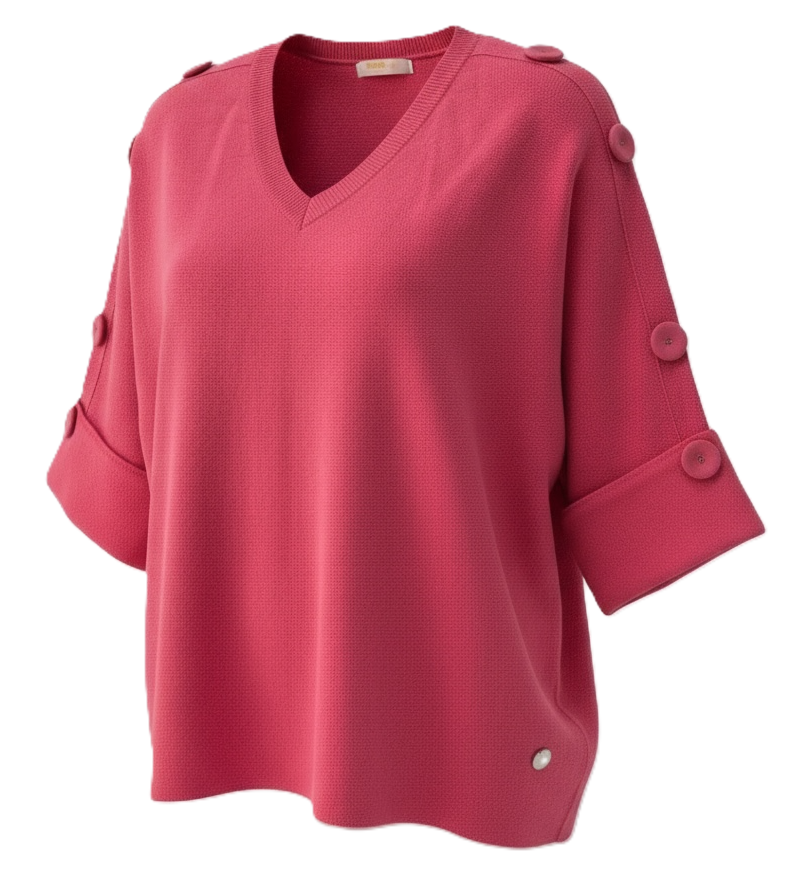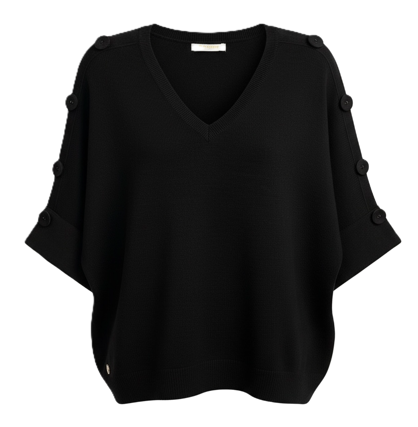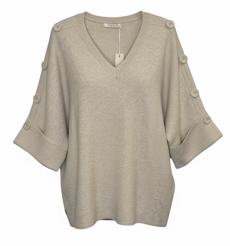 ELBOW LENGTH SLEEVE V NECK KNIT JUMPER WITH BUTTON DETAIL