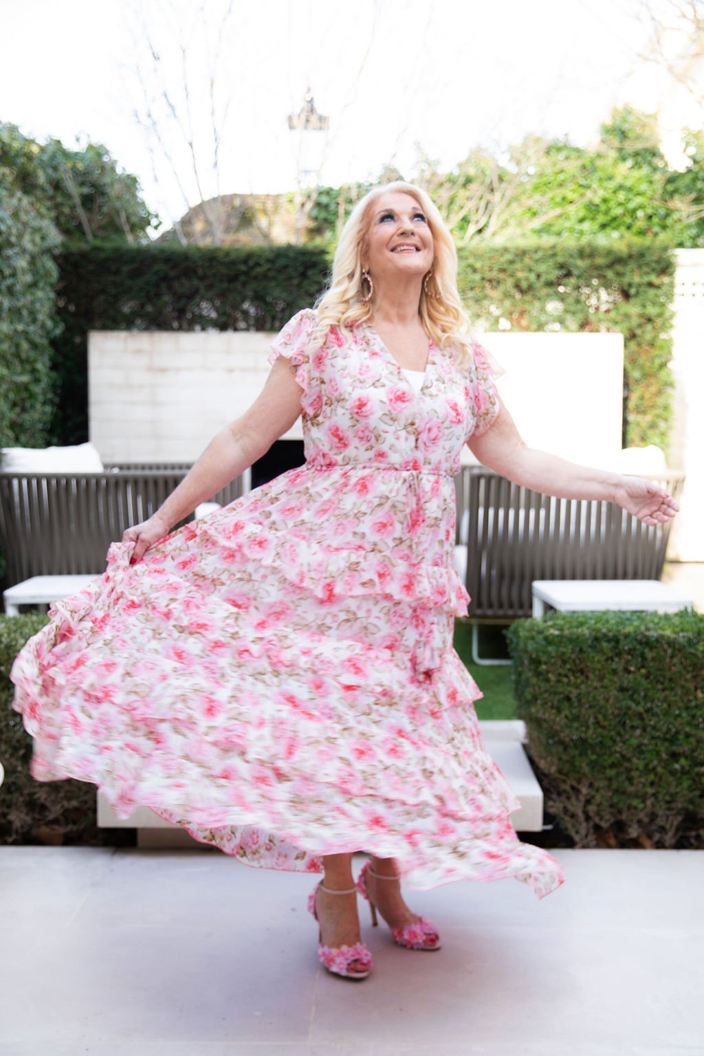 Introducing The Tilly. A beautiful chiffon dress that exudes femininity and romance. This special dress features floaty tiers combined with a separate cami slip underneath that creates a dreamy delicate vision. This dress is designed to enhance your natural beauty and make you feel like a true goddess. Whether you’re attending a wedding, a cocktail party or a date night, this dress is the perfect choice to make a statement and turn heads. Embrace your inner romantic, whatever the occasion you will feel like a princess in this stunning and special vintage rose dress.