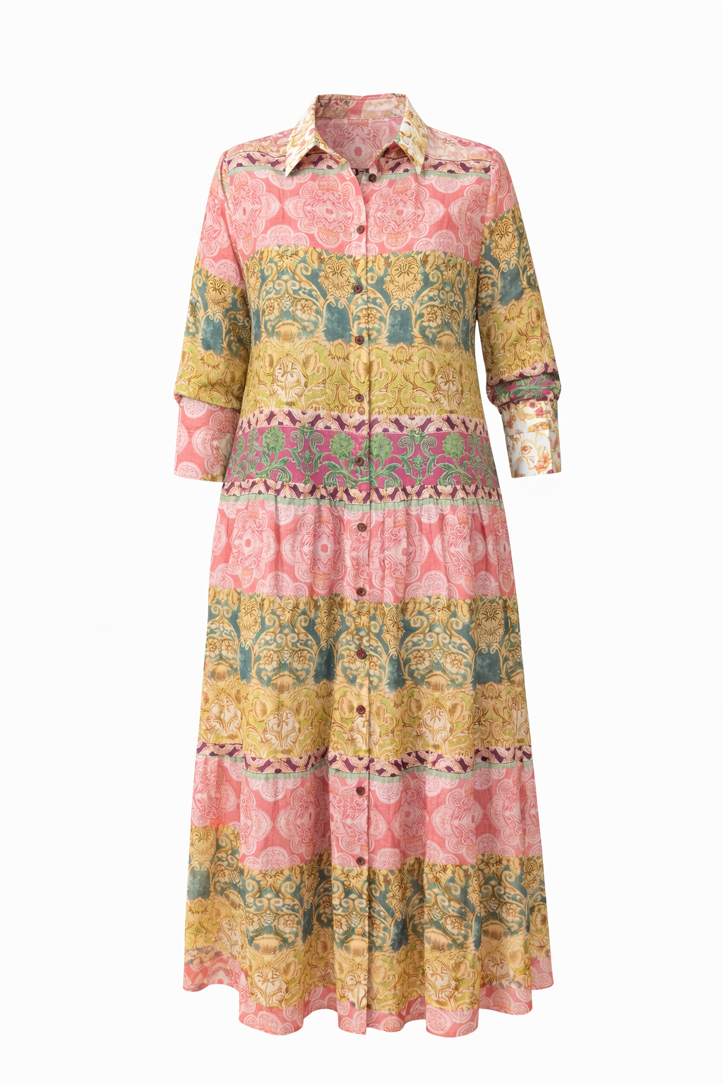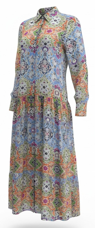 PATCHWORK TIERED SHIRT DRESS