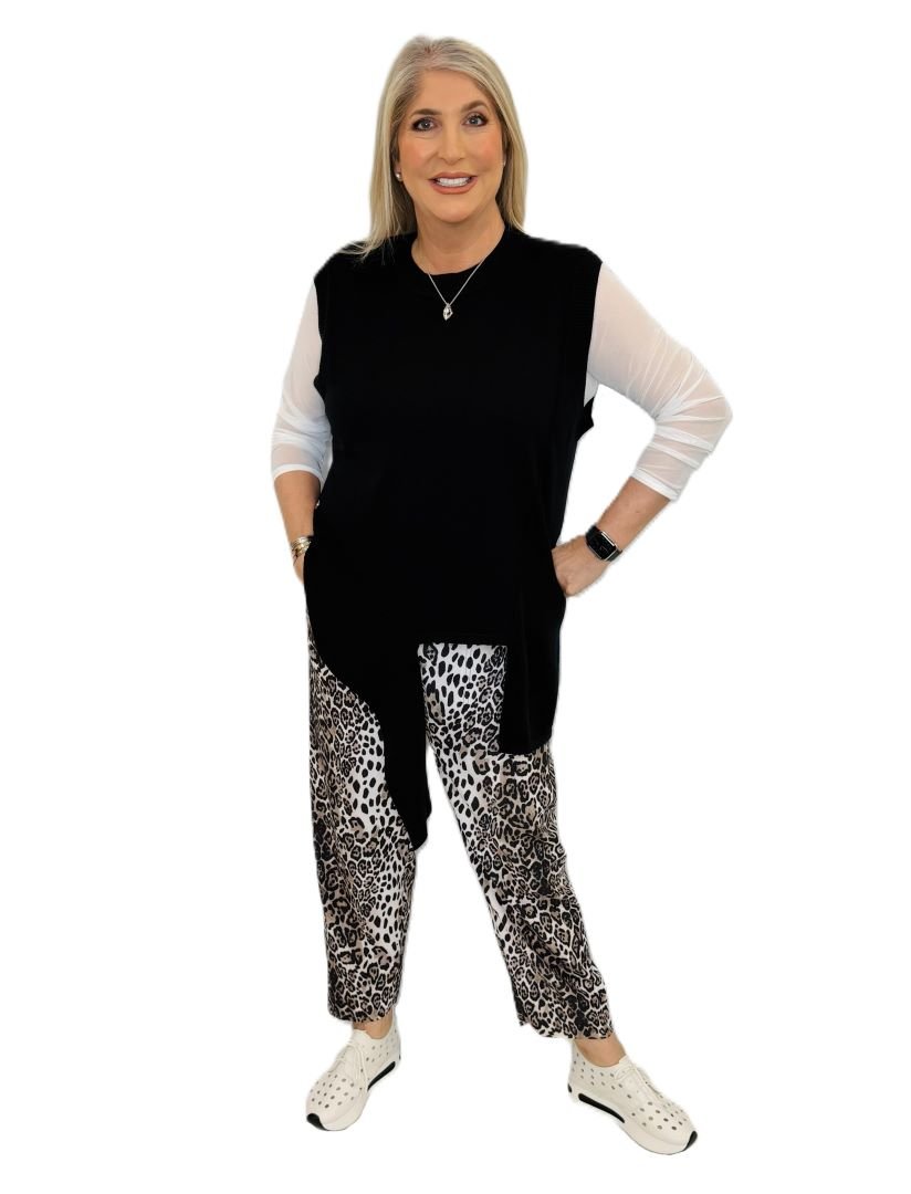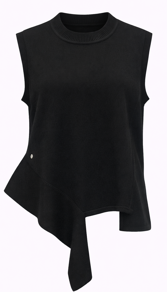 KNITTED MIXED LEVEL TANK WITH RIBBED PANEL NECK AND ARMHOLE